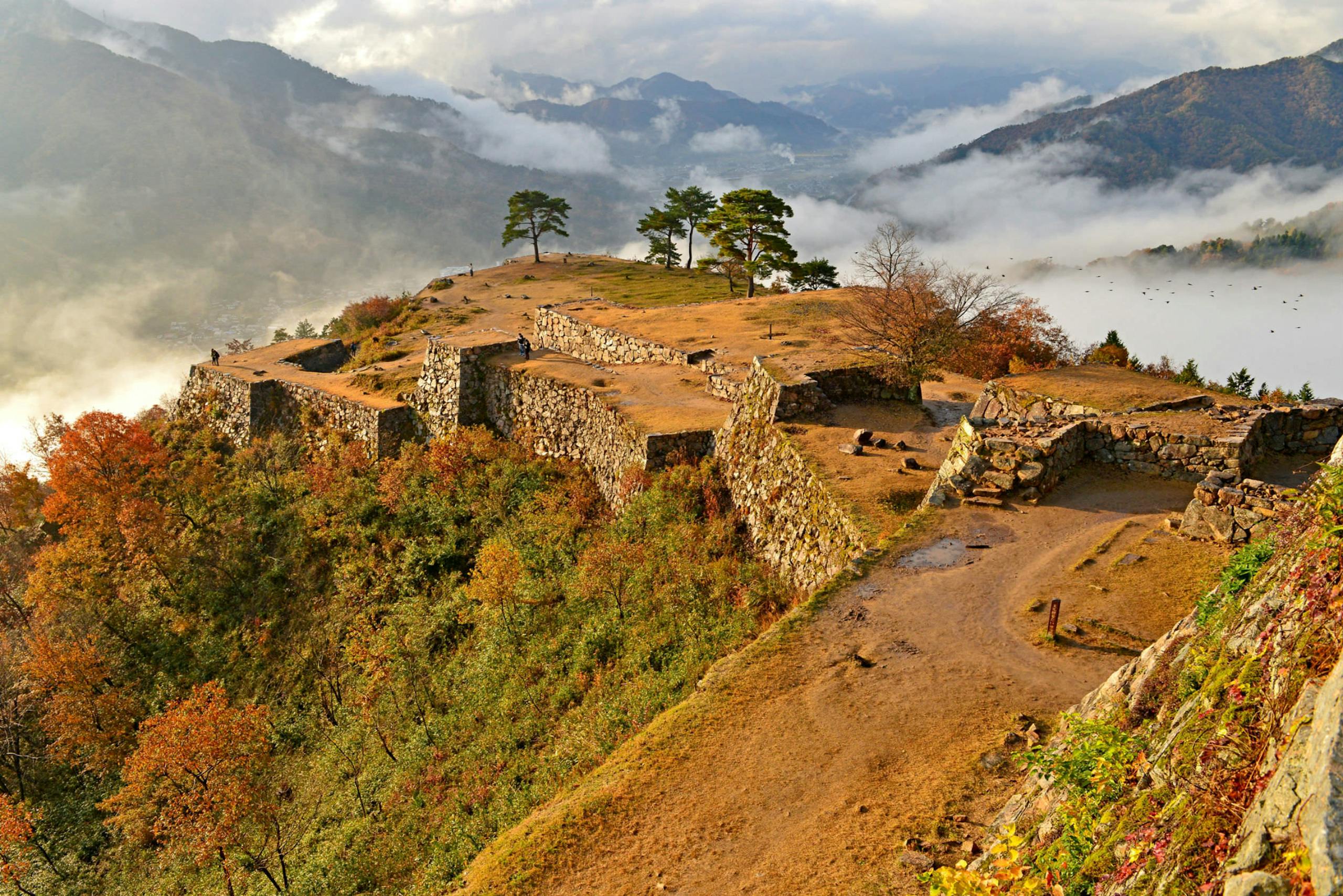 秋の明け方、但馬の山あいに白い霧が立ち込めると、石垣の城が雲の海に浮かび上がります。兵庫県朝来市にある竹田城跡は、その幻想的な景観から“天空の城”や“日本のマチュピチュ”と称される、関西を代表する絶景スポットです。石垣に囲まれた城跡と、雲海や紅葉、桜といった四季折々の自然が織りなす風景は訪れる人々を魅了し、写真映えする旅先としても人気を集めています。